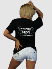 Sports a Large CoopersGuns.com logo back and a small badge on the left breast.